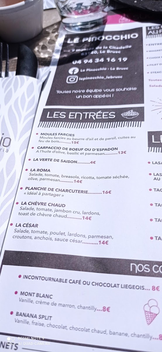 The menu at Le Pinocchio offers a delightful selection of dishes that showcase the flavors of the region. For those looking to start their meal with something fresh, the Salade Fermière is a standout, offering a satisfying blend of crisp greens and savory ingredients that perfectly set the tone for the meal. Moving on to the main courses, the restaurant's offerings include a range of traditional French staples, each crafted with care. The seafood options are particularly noteworthy, featuring freshly caught fish, while meat lovers can enjoy expertly prepared cuts of beef and poultry. Each dish is thoughtfully presented, reflecting the restaurant's commitment to quality and attention to detail. Whether you’re in the mood for something light or a hearty entrée, Le Pinocchio's menu has something to satisfy every palate, making it a must-visit for anyone in the area.
